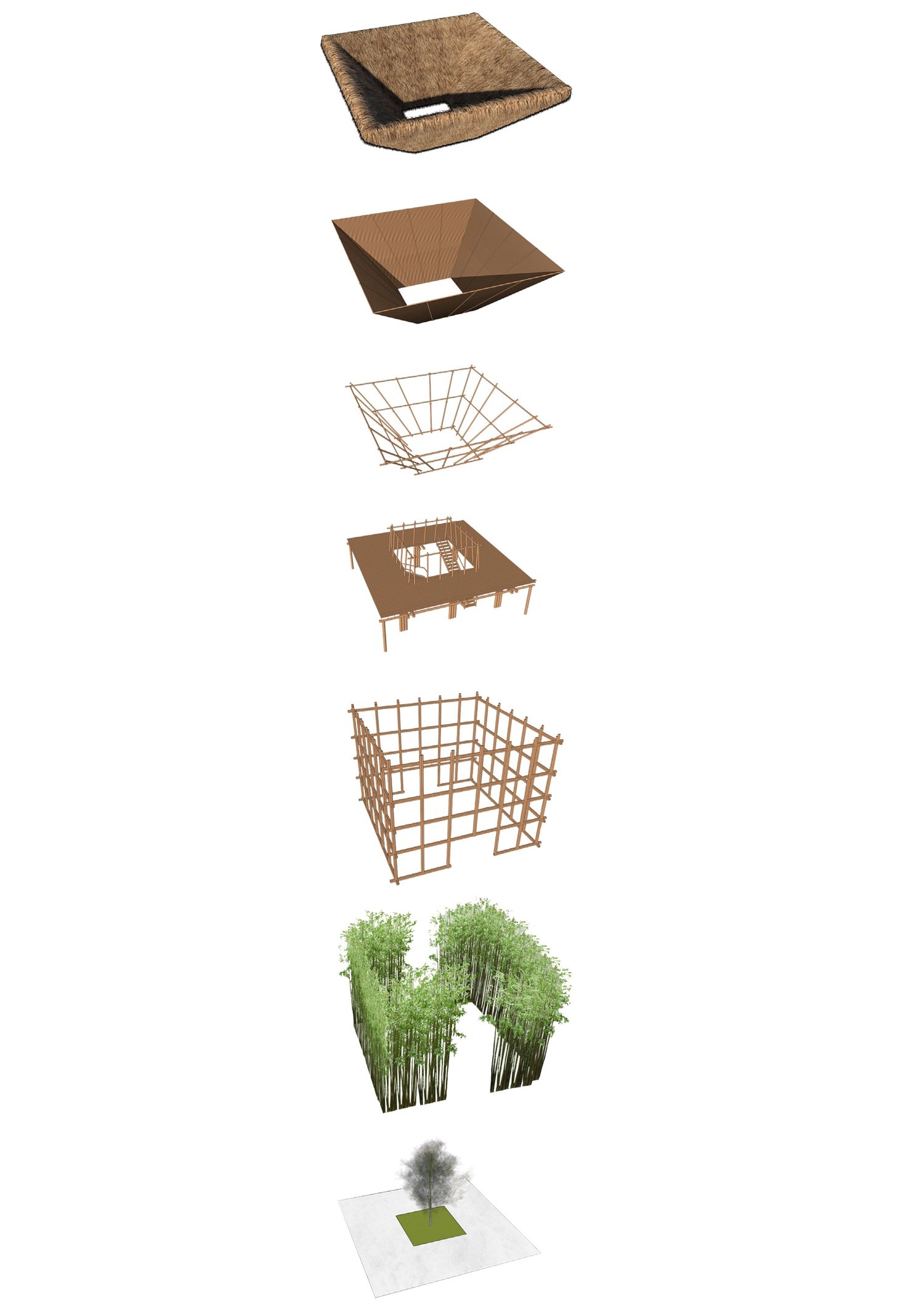 This humble design for how the museum of the future should be takes the form of the bale – the traditional house of the Ifugao peoples of the Cordillera mountain range in Northern Luzon, Philippines. In our design the bale is inverted inward and arranged around a central open atrium. Informed by Indigenous building techniques and using local materials, our design uses bamboo instead of the traditional hardwood as a framework, and living bamboo creates the ‘exterior walls’. This design reinforces age-old practices that are very sustainable: from the harvesting of raw materials to the actual act of building and use, the open-air design promises the possibility of a low to net-zero carbon future of museum design.