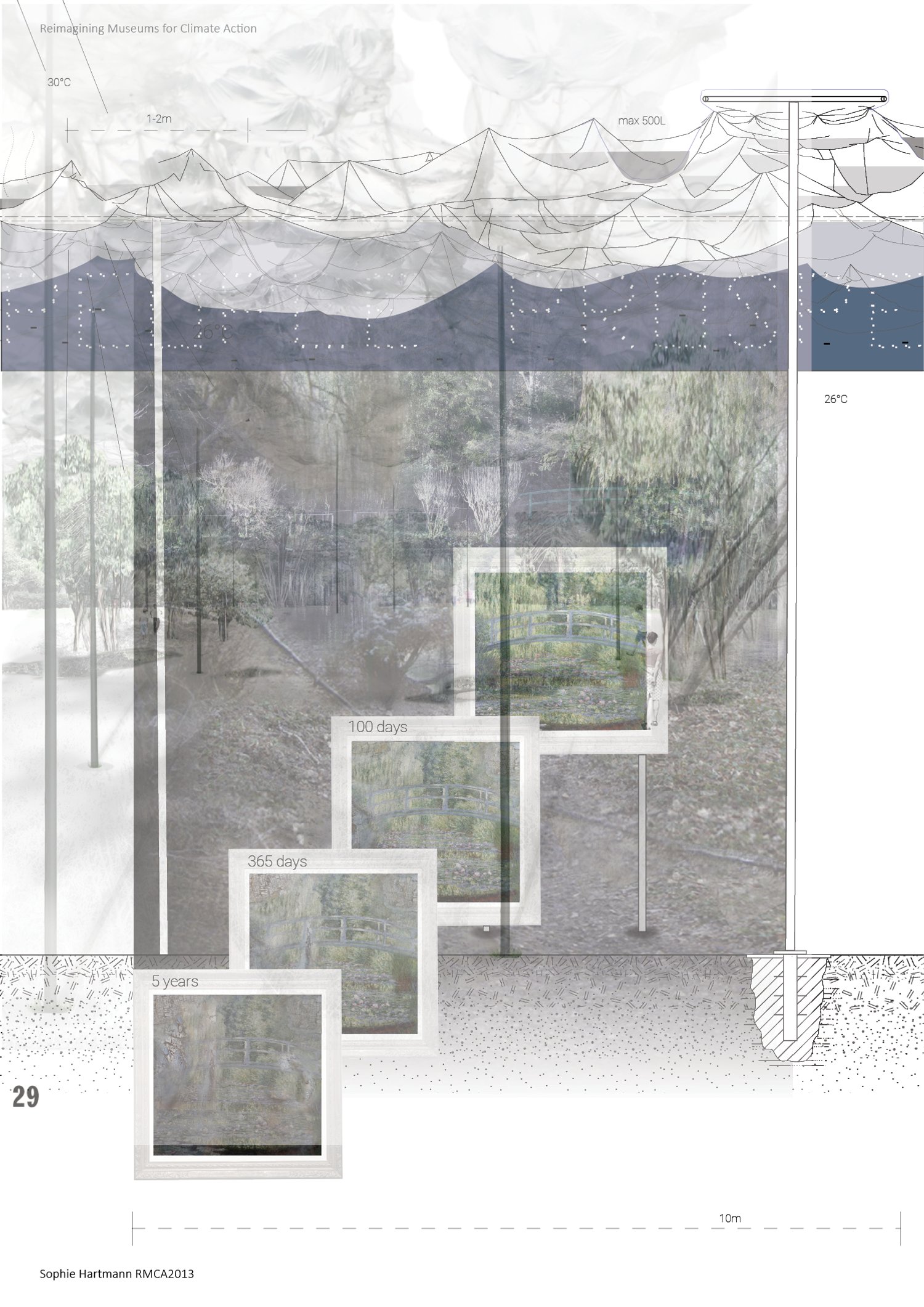 Evidence of culture will define the atmosphere of the reimagined museum, while the presence of today will be supported by its openness to weather. light and an uncontrolled decay of both environment and art.