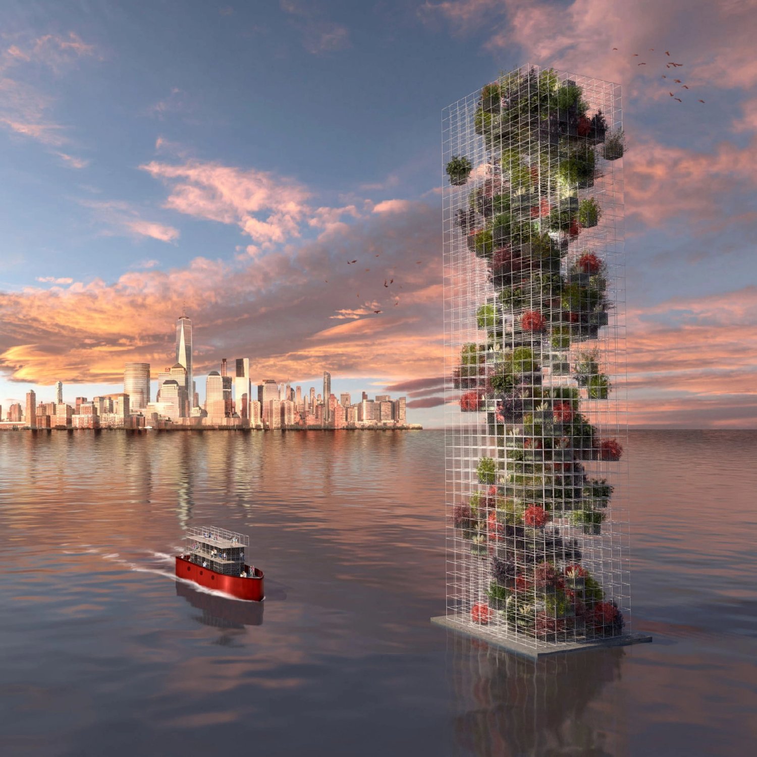 With a rich array of wildlife, Living Museum is both a catalogue of, and monument to, the diversity of New York’s coastal ecosystem. It demonstrates how museums can proactively respond to our changing climate. An open-air tower of scaffolding and metal mesh, its materials are repurposed from nearby construction sites and serve as a habitat for native species. Its foundation is amphibious, with a hollow concrete slab attached to telescoping pylons that rise and fall with sea levels. With the exception of the occasional researcher, the museum is free from human interference. Visitors engage with it from a travelling educational centre that also serves as a gallery and research facility. Living Museum questions the notion of our traditionally static institutions, reimagining them as active participants in preserving our environment.