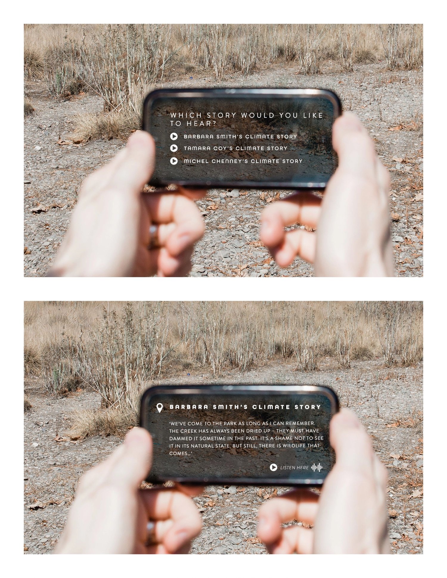 We aim to vitalize the museum concept by producing localized, tailored experiences to maximize public engagement. We guide visitors through each location by interpreting climate issues using unique landscape features, drawing on perspectives from Indigenous storytelling to scientific discourse, to present a multifaceted understanding of human relationships to land and our impact on the climate.