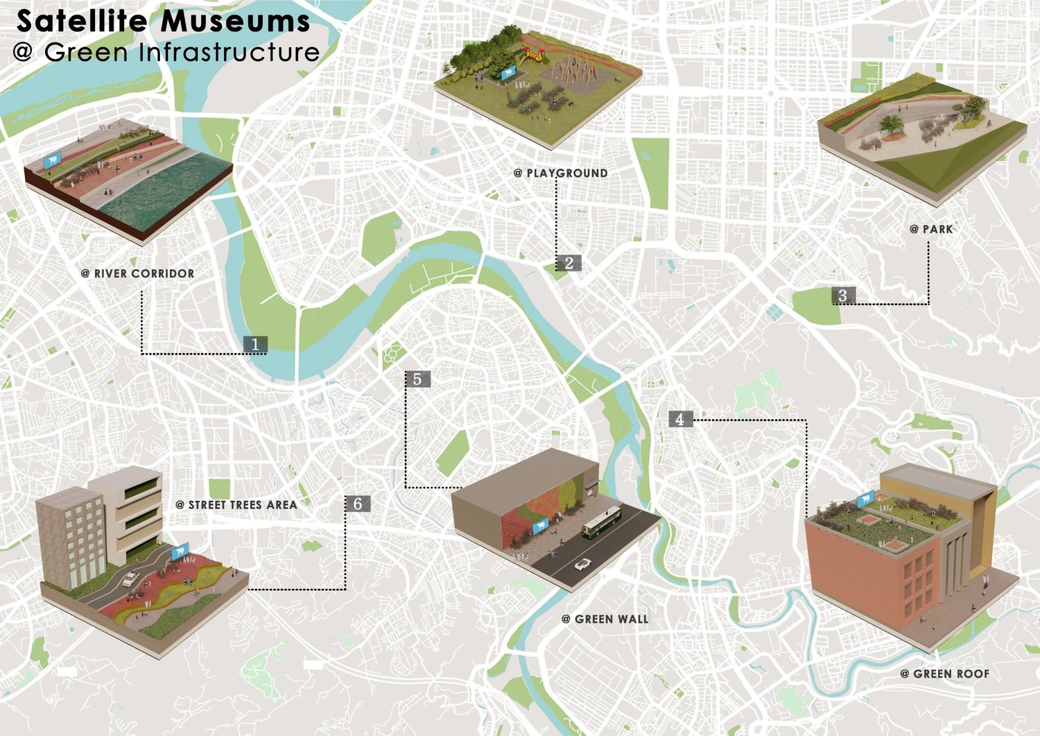 Floods, landslides, drought, wildfires, blizzards... we encounter such extreme weather events all too often now. It’s time to get exact solutions to ease such events. Reducing carbon footprints is an option. We propose a future museum - “MUSEUM of EX-ACT: exponential growth using Green Infrastructure (GI)”. It aims to use existing GI instead of building a museum, globally and simultaneously, so existing GI become “satellite museums”.